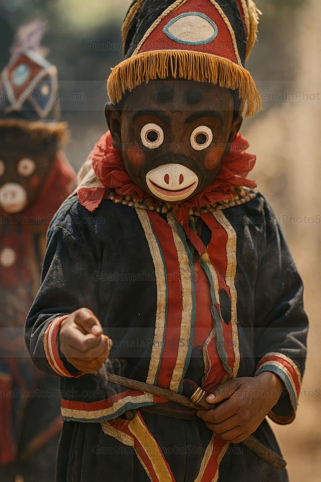 Danzador con disfraz de mono en el Baile del Venado