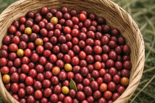Cerezas de café recién recolectadas