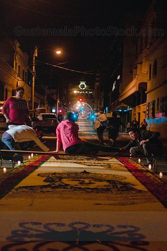 Elaboración de alfombra en la Ciudad de Guatemala